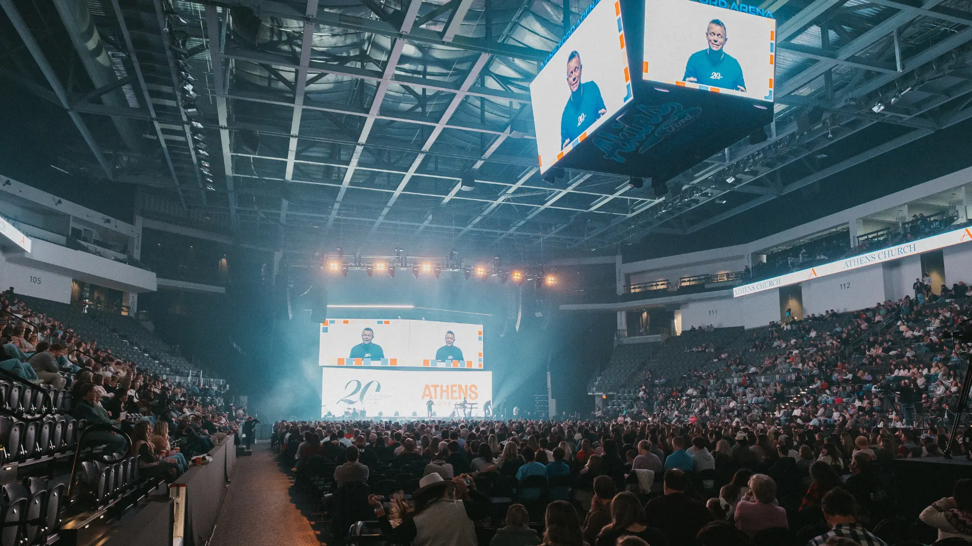 SSG created a custom logo and brand mark that served as a temporary extension of the Athens Church brand identity, along with animated assets, social graphics, signage, and banners for web usage.